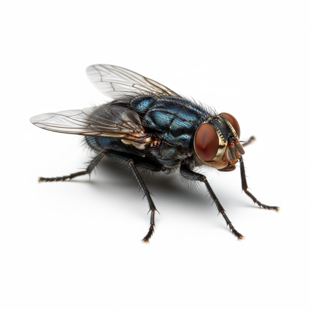 House Flies and Blow Flies are common, highly unsanitary urban pests, capable of rapidly reproducing and contaminating food and surfaces. Adults constantly search for food and breeding sites, using smell and movement as their primary attractants. They locate food sources by sensing rotting organic matter, warmth, and open access in kitchens and waste areas, and they are typically active during daylight hours. While the flies themselves are not venomous, their feeding and landing habits carry numerous bacteria and pathogens (like E. coli and Salmonella) onto food and sterile environments. Uncontrolled infestations near residential or commercial food areas quickly lead to extensive food contamination, disease transmission risks, and a disruptive public health issue that demands professional identification and control.