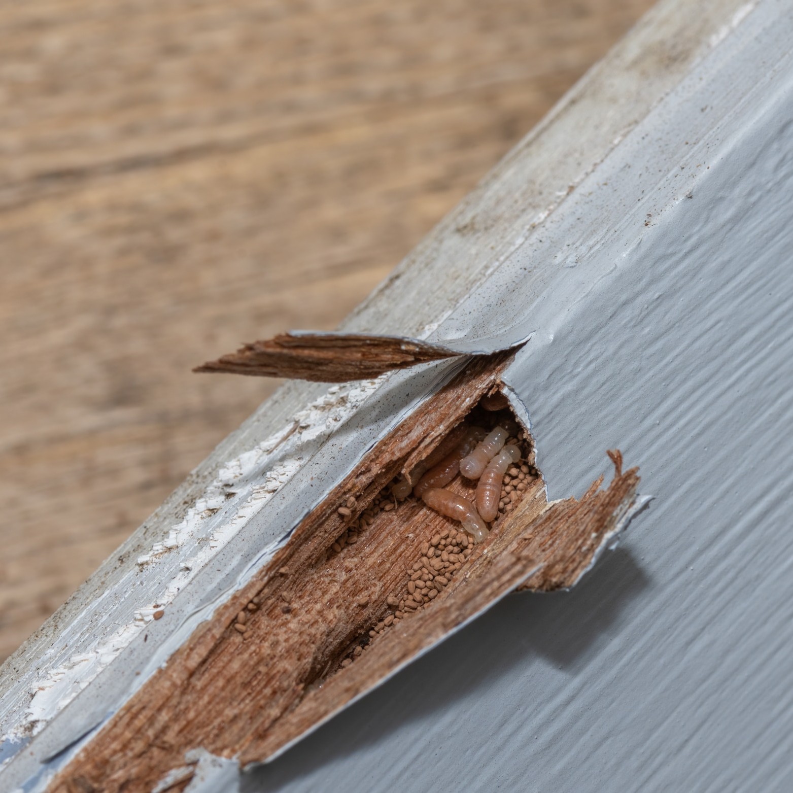 It’s not recommended to spray household insecticides on termites. While it may kill visible termites, it won’t reach the colony and may cause termites to scatter and spread deeper into your home. The best step is to avoid disturbing the affected area and call a professional termite control specialist immediately for a proper inspection and treatment plan.